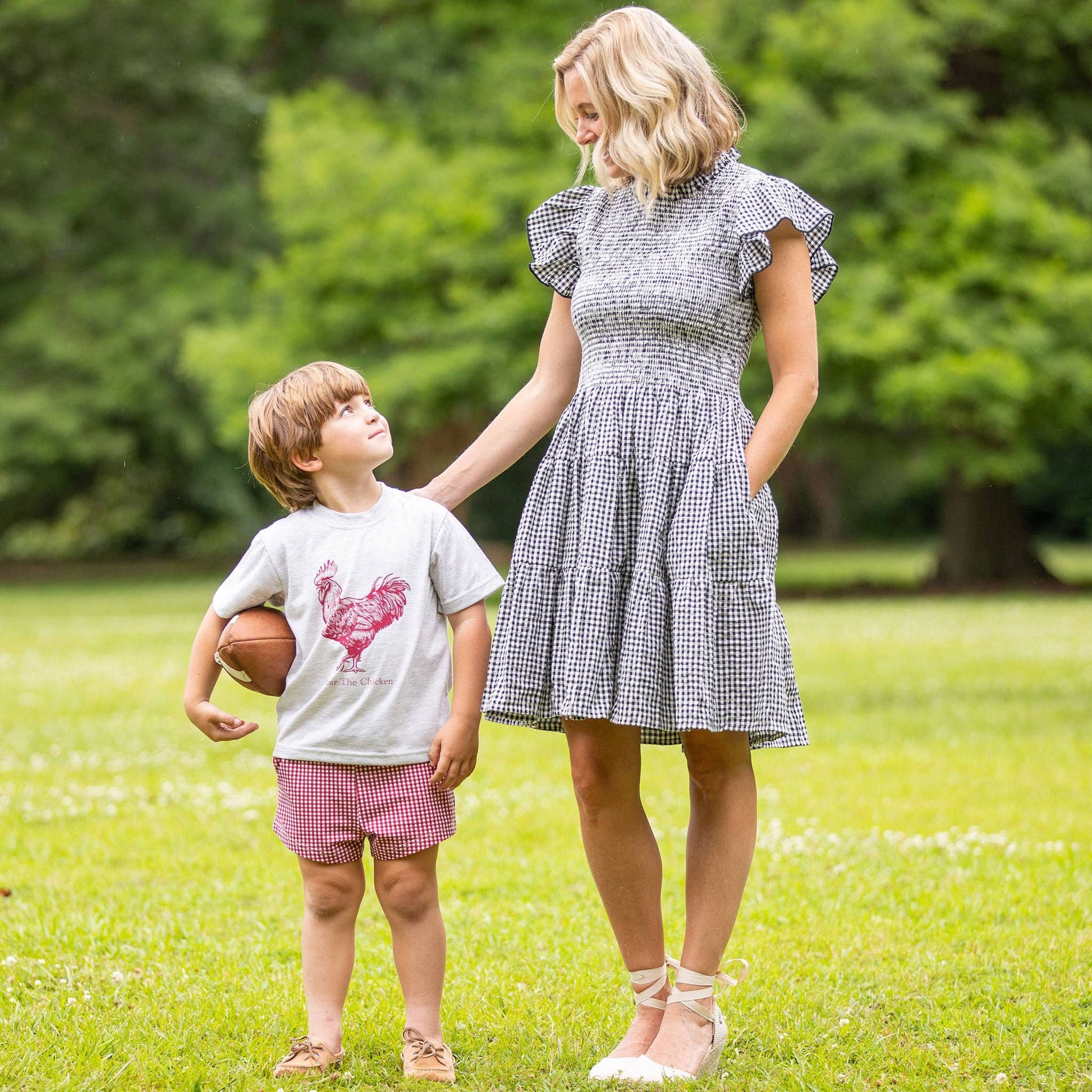 "Fear the Chicken" heathered garnet and grey t-shirt is SO soft! 100% Cotton; machine wash cold using mild detergent, tumble dry low